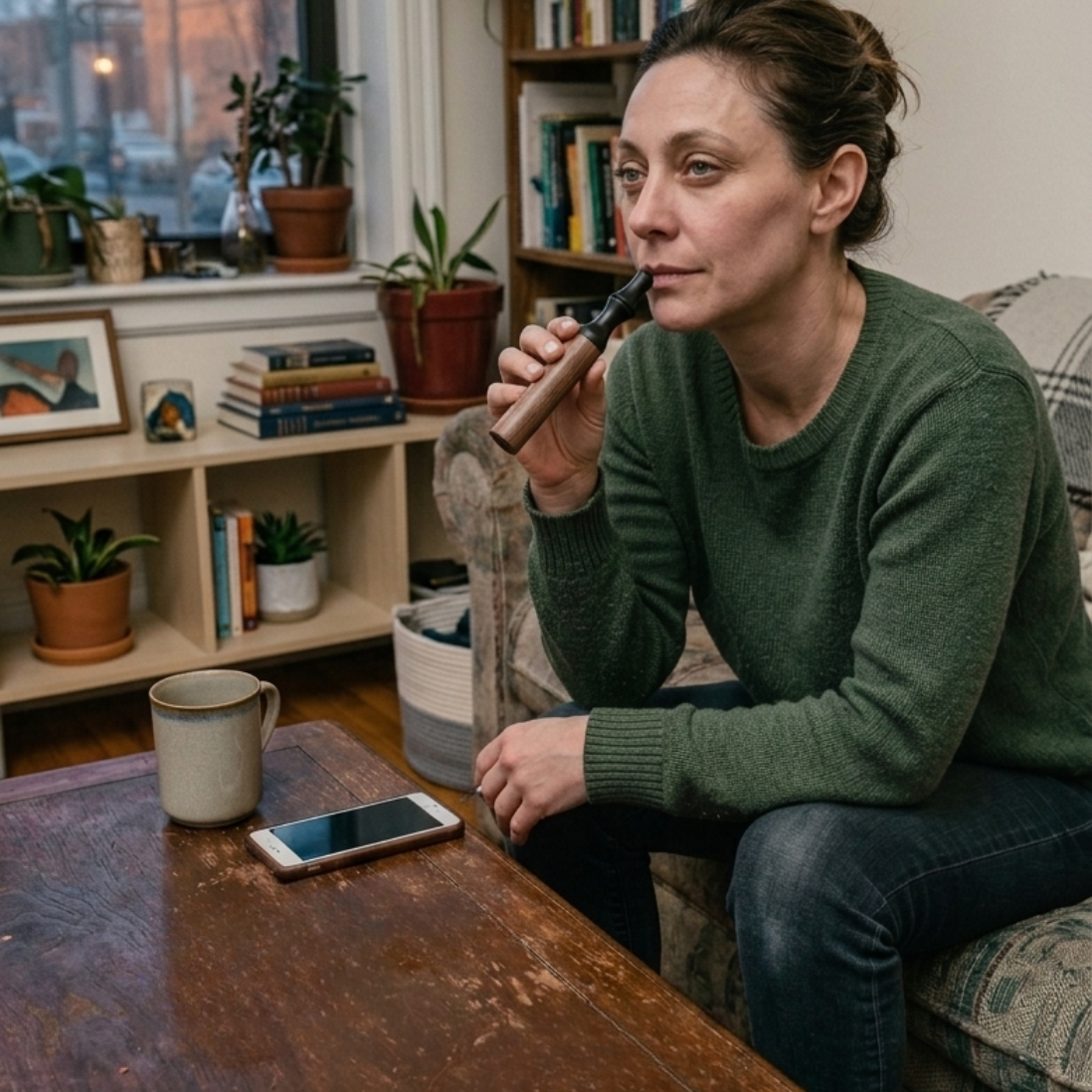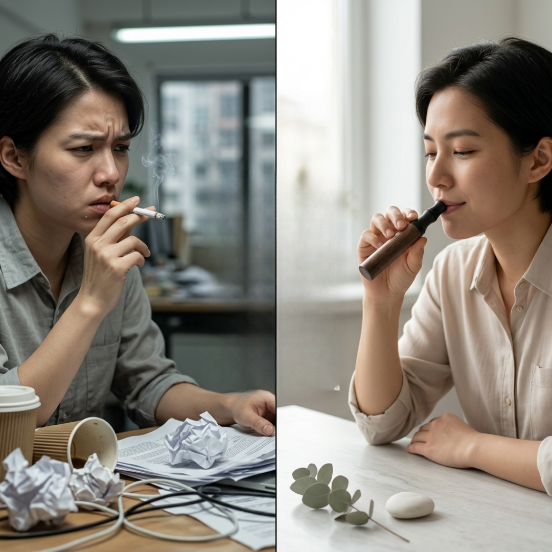 The draw feels wrong, nothing like the habit your body is used to. It doesn’t calm you, doesn’t replace the habit… it just reminds you of what’s missing.